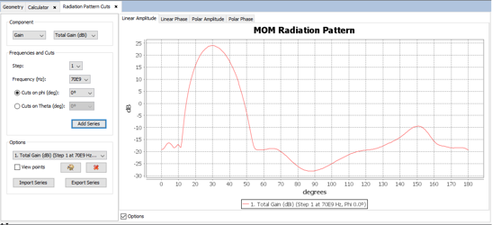 The radiation cuts can be visualized by clicking on Show Results - Radiation Pattern - View Cuts.