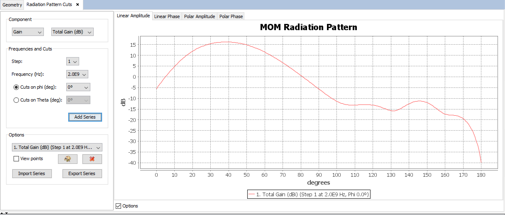 The radiation cuts can be visualized by clicking on Show Results - Radiation Pattern - View Cuts.