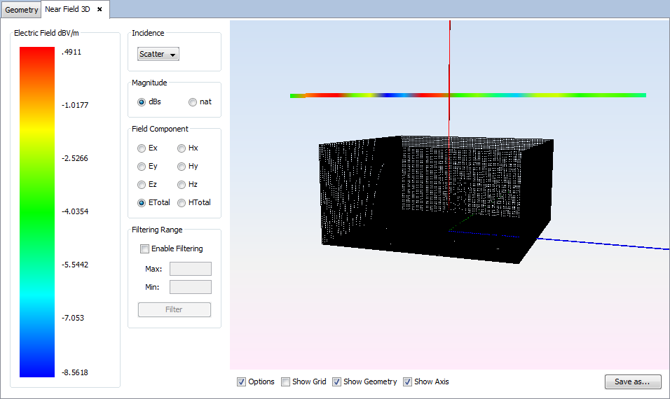 Changing values for incidence, magnitude, field or component parameters the visualization for the new parameters will be shown.