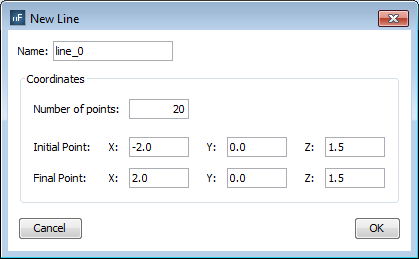 To add a line visualization, select 'line' on the selector of 'Geometry Types' section and click on 'Add' button. The line parameters panel will appear, then configure the values as the next figure show and accept it clicking on 'OK' button.