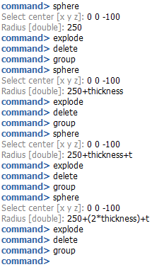 upper semisphere. Then, after creating each sphere, we use the explode command to