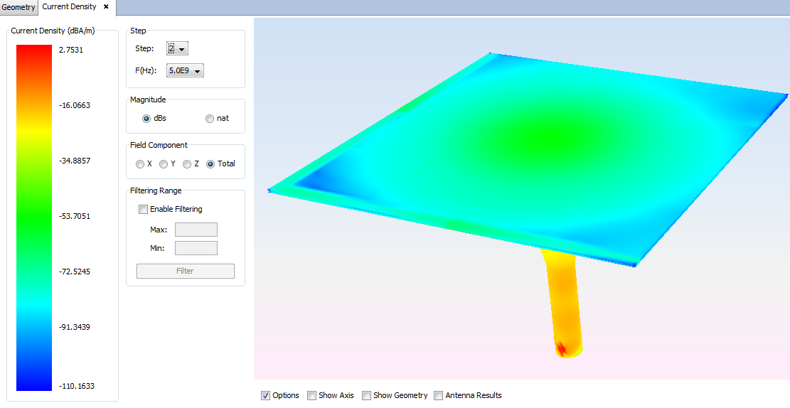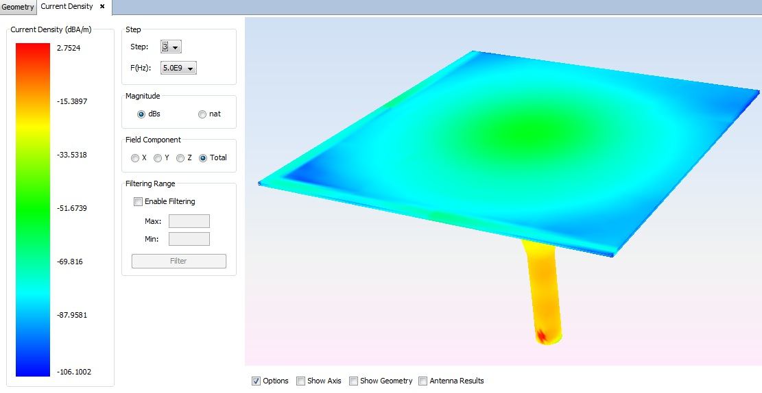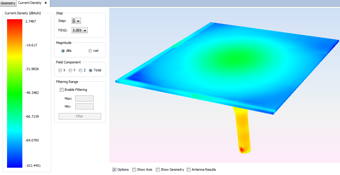 Figure 8. Current density - Step 3: 5.0e9 Hz