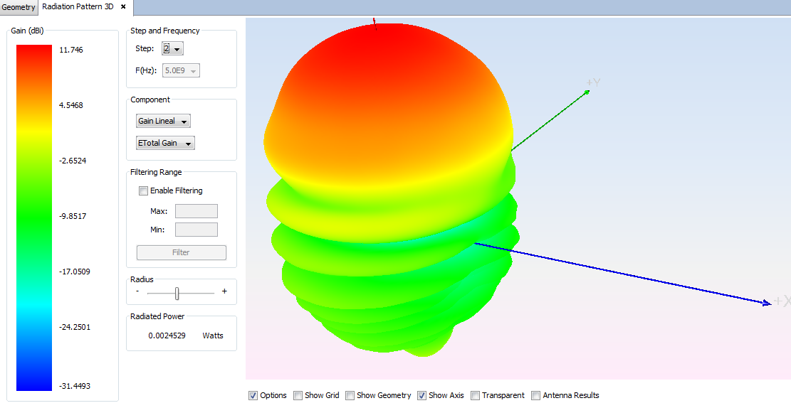 Figure 2. 3D radiation pattern - Step 2: 5.0e9 Hz