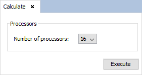 Select 'Calculate --> Execute' option to open simulation parameters. Then select the number of processors as the next figure show. The number of processors to be selected, to improve the efficiency on time, will be the number of the processors of the machine where the example will be executed.