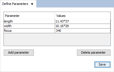 Add these parameters to have the reference for the reflectarray layout generation. On this tab, all the parameters to be used in the construction of geometry will be set (see Define Parameters). - ‘length’ contains the length value for the plane of the reflectarray layout. In order to follow the reference article, this parameter must be the length of the unitary cell of the database (x = 11.43mm) multiplied by 37 unitary cells that the reflectarray contains in ‘X’ axis. - ‘width’ contains the width value for the plane of the reflectarray layout. In order to follow the reference article, this parameter must be the width of the unitary cell of the database (y = 10.16mm) multiplied by 29 unitary cells that the reflectarray contains in ‘Y’ axis. - ‘focus’ contains the value for the position of the focus on the ‘Z’ axis. This value will be used for positioning a relative plane to locate the radiation pattern and its value is 340mm.