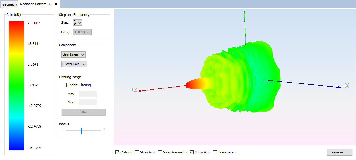 - Check the “Compute 3D Pattern” box and set the angle step to 0.5, on ‘Main Properties’ tab.