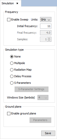 Select 'Simulation --> Parameters' option on the menu bar and the following panel appears. Set the parameters as the next figure shows and save it.