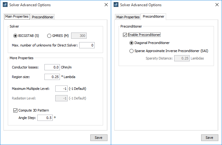 - Check the “Enable Preconditioner” box and select Diagonal Preconditioner option on ‘Preconditioner’ tab.