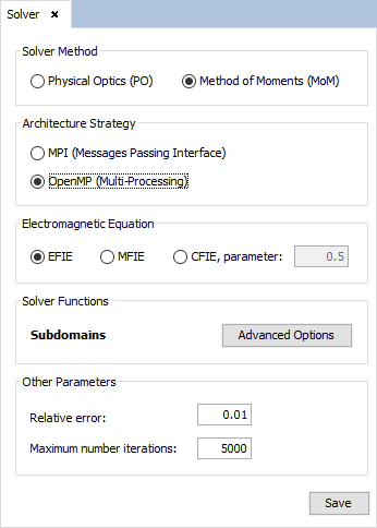 Select Solver --> Parameters' to open the solver configuration panel and then set the following parameters in order to obtain the most possible efficiency and the 3D results: - OpenMP option for the Architecture Strategy, on Solver parameters panel.