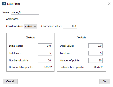 For each of the axes different than the one selected in the Constant axis drop-down list, the user needs to specify the following parameters: