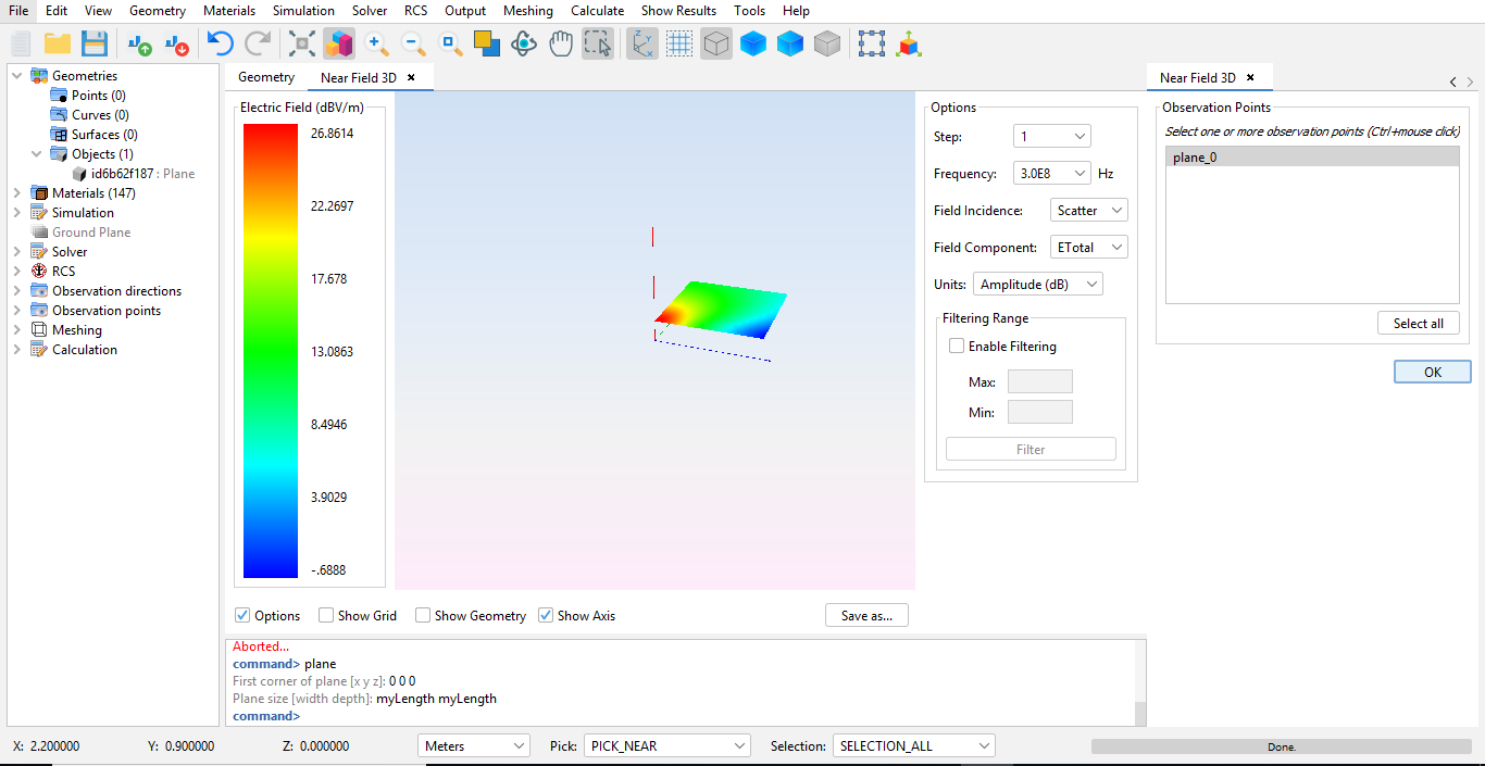 - Show Grid: if this option is selected, a grid with every observation point will be overlayed to the rendered figure, making possible to precisely see which value has every observation point defined in the geometry.