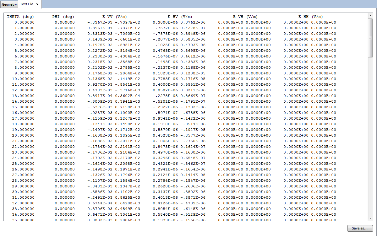 Select Show Results → Far Field→ View Text Files to visualize the text file with the results of the simulation.