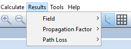- The Propagation Factor submenu contains options to visualize the propagation factor, that is, the strength of the field relative to the free-space value, at a given height or range value.