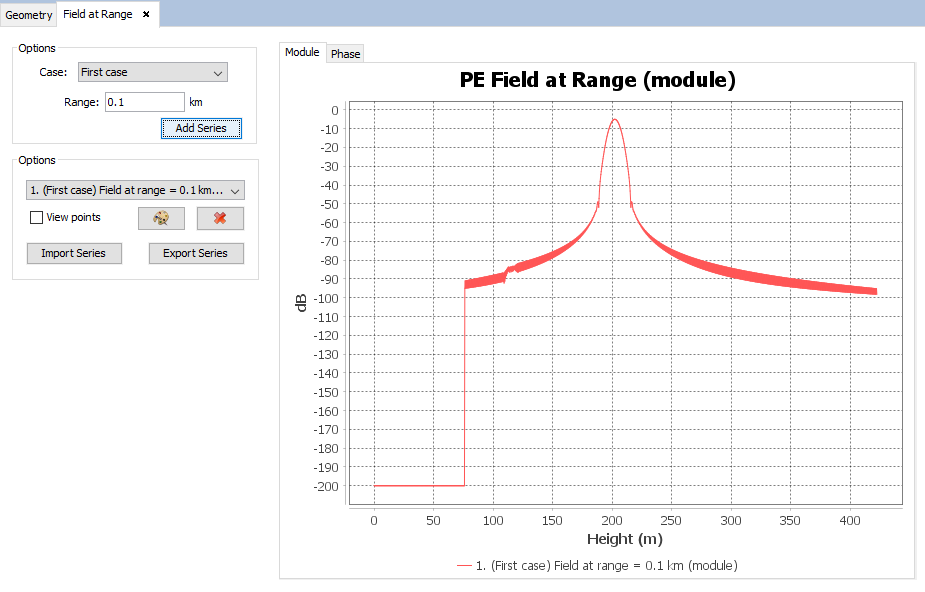 In this panel, it is possible to select the simulation case the user wants to show the results for, as well as the range or height value, depending on the visualization mode. To add a new series, the user needs to press the "Add Series" button after selecting the simulation case and range/height value.