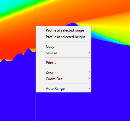 If the user wants to see a more detailed view of the values at range or height, pressing right click anywhere in the graph will show a pop-up menu with those options.