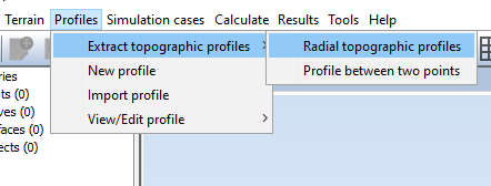 This submenu shows two options that allow the user to create topographic profiles from an imported terrain model. The options under this submenu are the shown in the following figure: