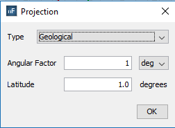 - Type: determines the way the terrain is represented. If it's projected on a plane, Projection will be selected, otherwise, if it's represented on the earth's surface, Geological must be chosen.