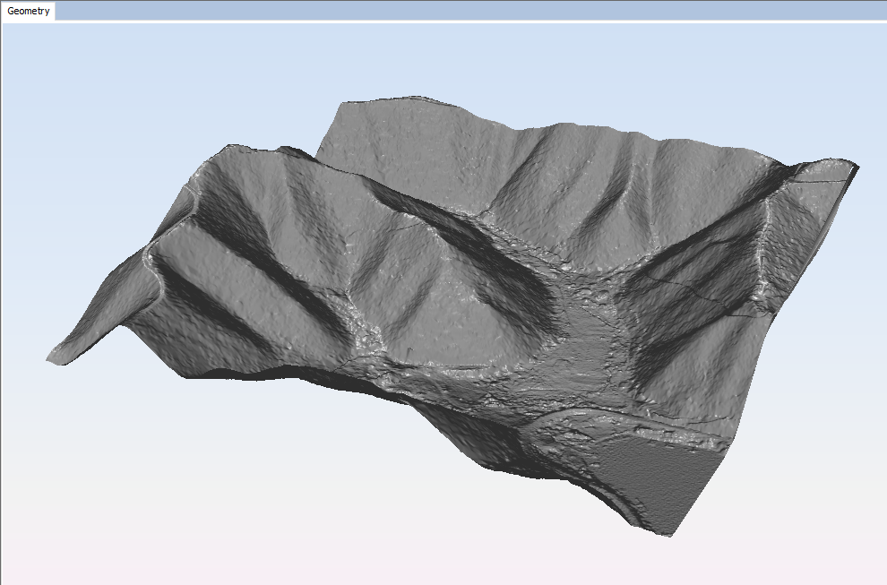 When the above parameters have been set, the user can press the "Save" button to import the terrain. The terrain model will be shown in the geometry panel.