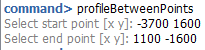 In the console, write the point "-3700 1600" and press enter, then do the same for the point "1100 -1600". This points can also be selected on the terrain.