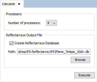 Step 7: Set calculate parameters using "Calculate --> Execute" option on the menu bar. The number of processors to be selected, to improve the efficiency on time, will be the number of the processors of the machine where the example will be executed. Select the path for the database file, previously checked the box to generate it.
