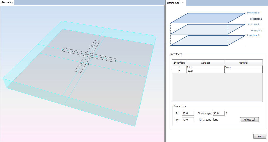 When this panel is opened, the cell is automatically created according to the geometry previously generated, see Geometry Menu.