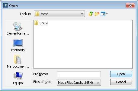This option can be chosen by the user to load the meshes files (msh file extension). When this option is selected the following window appears:
