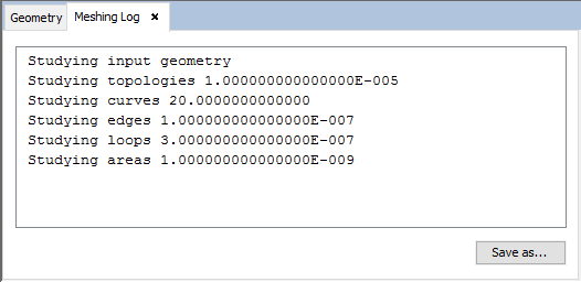 This option loads a file named mesh_log.txt that contains information about meshes. This information is printed in a new tab on the screen.