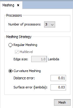 Using curvature meshing we get the meshed geometry defined in terms of triangles. This geometry should be very similar to the original geometry. We can force that the meshed geometry be close to the original one using the surface error (in wavelengths). In the mesher we have default values for this magnitude but the user can change it. The mesher tries to minimize the number of triangles of a meshed geometry such that the distance from any point of this geometry to the original one is smaller than the