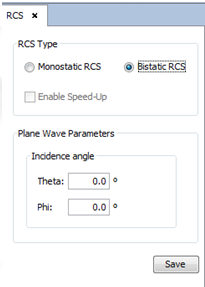 Select RCS → Parameters. Define the parameters as shown in the following Figure, and left-click the Save button.