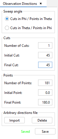 Select Output and left-click on Observation directions. Define the parameters as shown in the next Figure, and left-click the Save button.