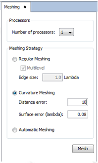 Select Meshing → Create Mesh. Define the parameters as shown in the next Figure, and left-click the Mesh button.