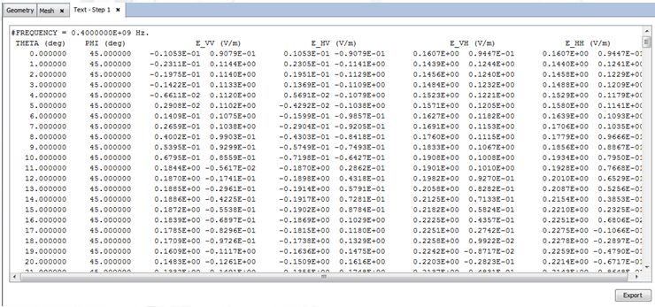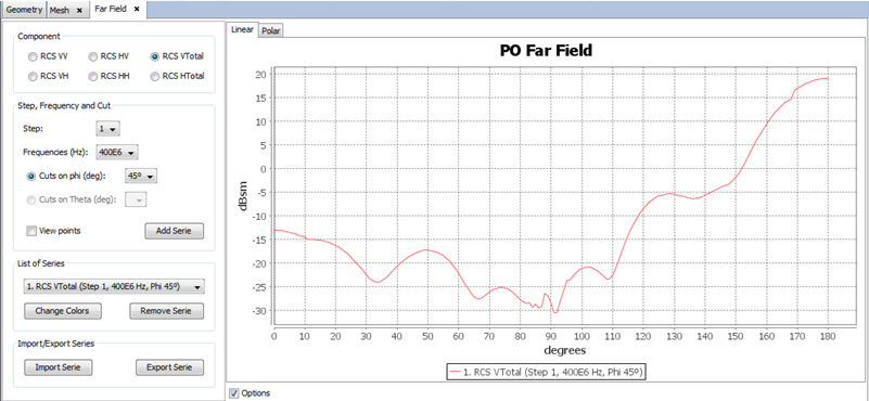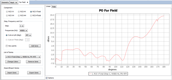 Re-mesh the geometry and run the simulation again. Then open the new RCS results shown in the next Figure.