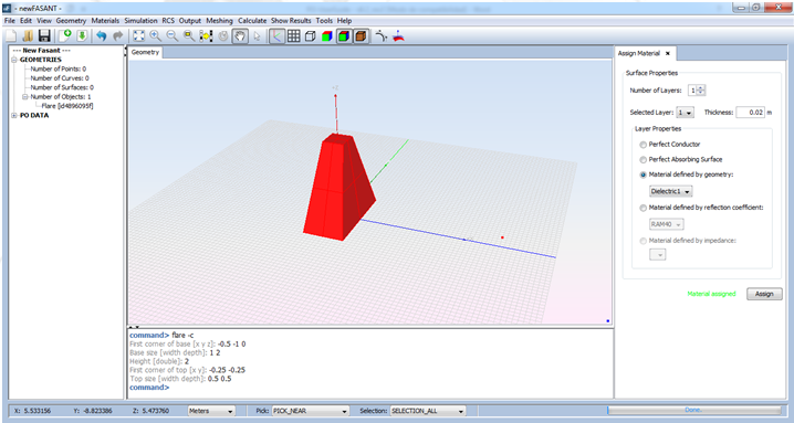 Select Material → Assign to assign the new material properties to the geometry. Select the object and left-click the “Assign” button as shown in the next Figure.