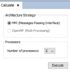 Step 9: Now we are going to simulate the project. Click on Calculate → Execute and choose the number of processors to use for the simulation. Then click on the Execute button and wait until it ends.