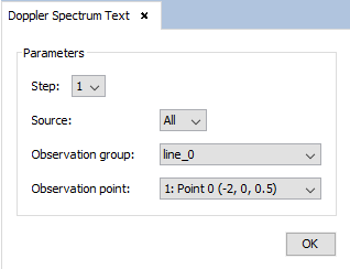 In this panel, the user can select the step, the source and the observation point the results will be shown for. Then, the text file is generated and opened with newFASANT text file viewer.
