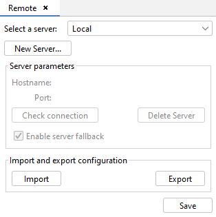 Complimenting this form, return to the Remote panel where the specified server can be selected in the Select a server drop-down list. By default, Local, means that the current machine is used as both client and server.