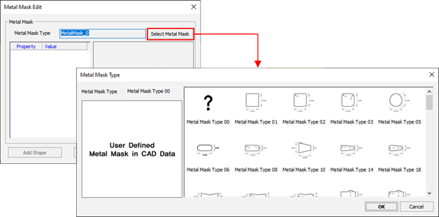 - Edit Metal Mask: Use the menu to change the shape of selected pin in