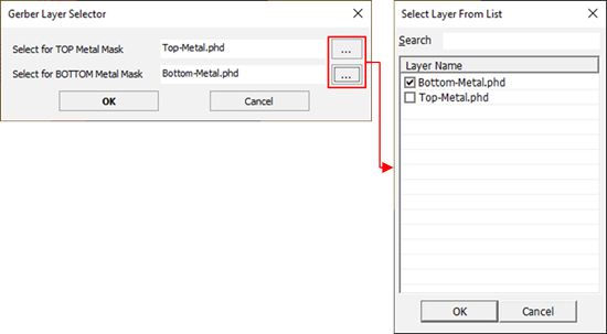 - Select for BOTTOM Metal Mask: Set bottom layer of reading Gerber file.