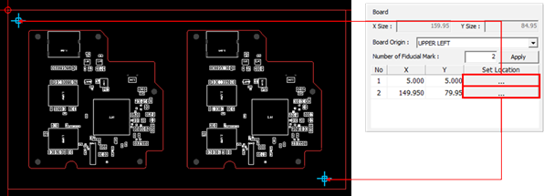 In the General tab, set the board information, fiducial mark coordinates, and reference coordinates.
