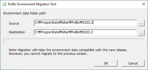 The Destination of the environment data folder path automatically sets to the latest version of the environment files.Note: Migration will make the environment data compatible with the new release. However, you cannot migrate to the previous version.