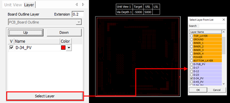 In the Layer tab of the unit view, sets the layer to display the inspection