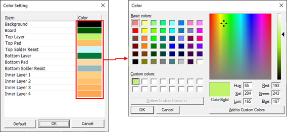 - Color Setting: Specify the color of each layer.