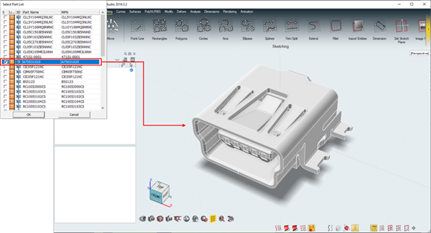 selected components used in the design data with 3D shape.