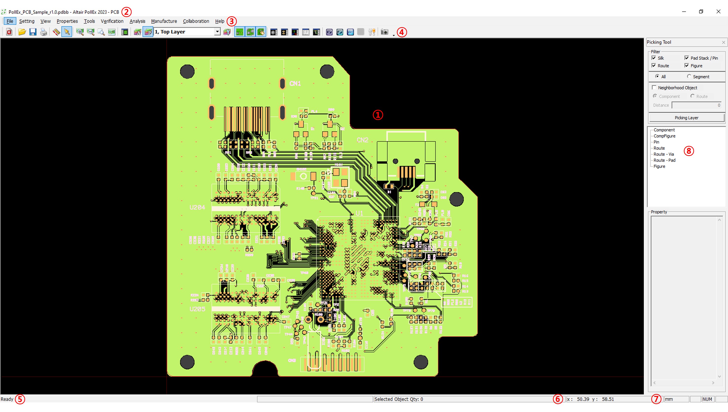 Explore the PollEx PCB interface.