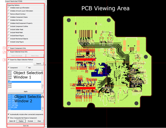the main parts or nets are placed and share them. From the menu bar, click File > Export To > Restricted PDBB. The Export Restricted PDBB dialog
