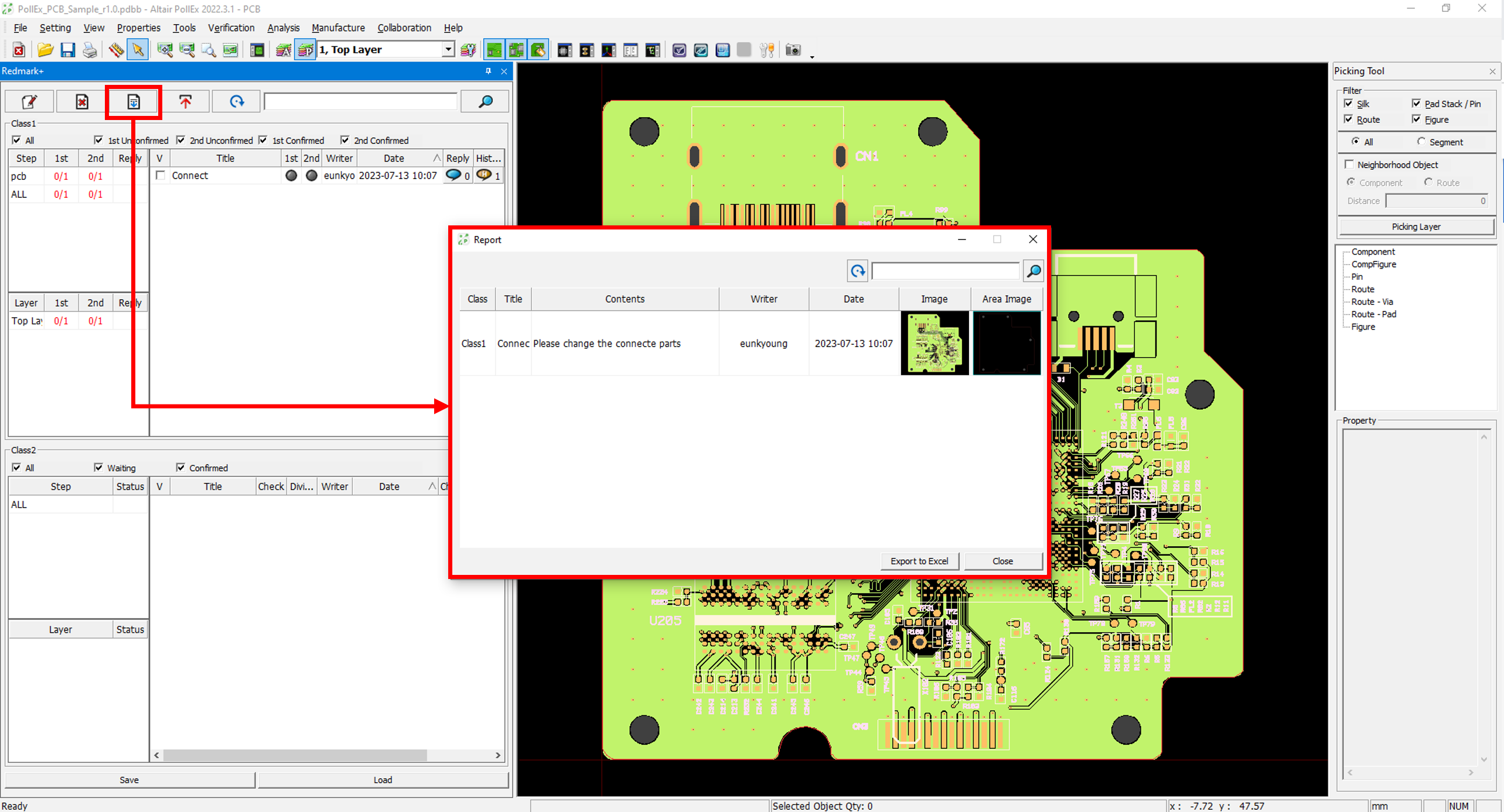 In the Report dialog, click Export to