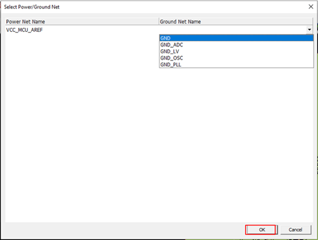 If the load component has multiple ground nets, the Select Power/Ground Net dialog opens.