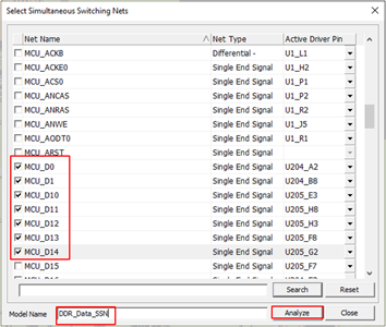 - In the dialog, select required signal nets for SSN analysis.