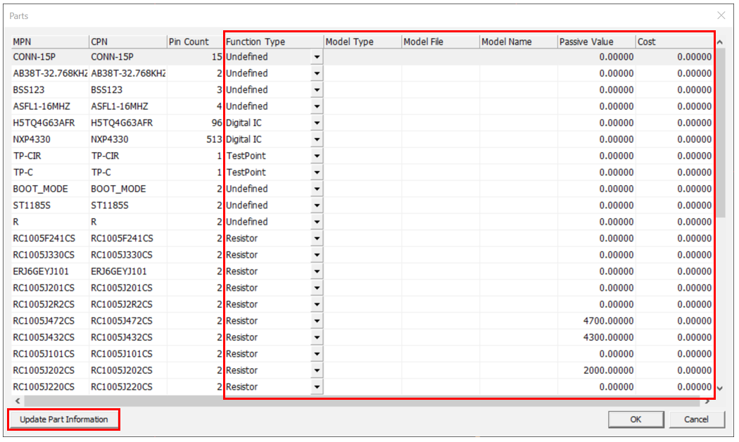 - Assign Decaps: Assign a value to the selected capacitor. Upon clicking this menu, the Assign Decaps dialog opens. By clicking required capacitor, the capacitor value will be changed.