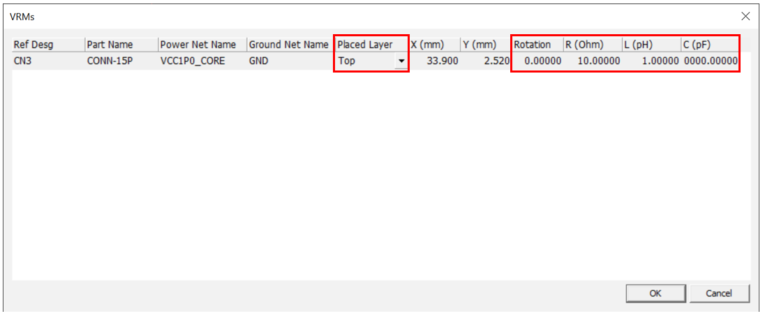 - Show Decap Location Property: Open the Decap Location Property dialog which displays whole capacitor information.